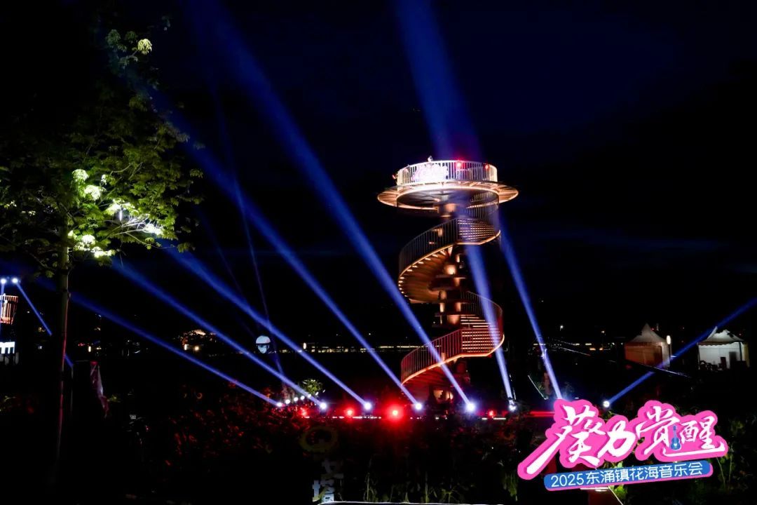 活动在盛放的向日葵花海中举办,以少女塔为中心搭建舞台,以赏花步道为场地设置“露营”观众席,不仅安排了音乐舞蹈节目表演,还有趣味画脸、灯光秀、各种创意打卡点、东涌名优特产大礼包抽奖互动,打造一场融合音乐活力与向日葵生命力的夏日欢乐盛典!